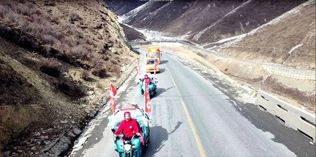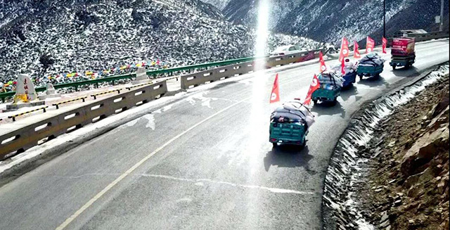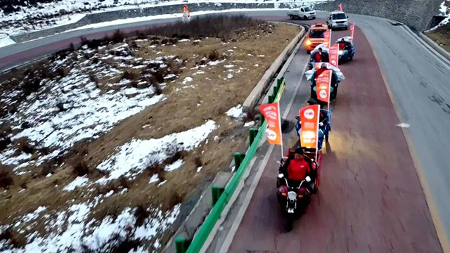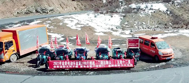 挑戰活動從北山十二盤坡坡底出發,當時氣溫近-8℃,卻絲毫沒有影響挑戰的熱情。在保障安全的前提下,6名騎手駕駛著最大載重2000斤的金彭電動三輪車盤旋而上,最終總耗時約2小時成功抵達目的地。這條有著“青藏高原最美盤山公路”之稱的路線,見證了金彭不斷推動行業技術進步和服務用戶的堅定決心,再次夯實了金彭“山地車 大功率”的產品屬性。
