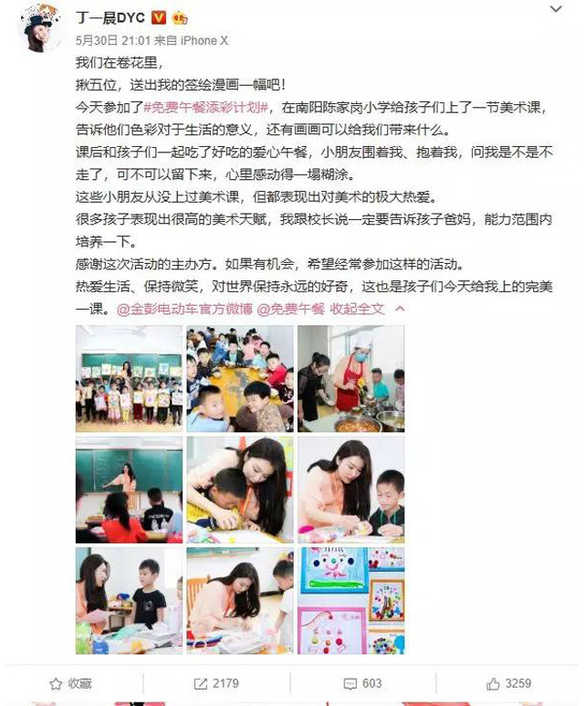 陳家崗小學的六一“歡樂課堂”從一節創意手工課開始。知名漫畫家丁一晨與兩位志愿者一起,給孩子帶來各式各樣的手工材料,在老師的指導下,孩子們天馬行空的想象力和動手能力被激發,眼花繚亂的材料立刻變成了一幅幅精致的作品呈現在大家面前。“孩子們的創造力很強,在這個過程中,他們展現出的互助、分享和純真等美好品質也讓我受益良多。”課間,丁一晨將學生們上課的情景繪制成了漫畫,用畫筆記錄充滿童趣的一課。活動結束后,丁一晨將孩子們的作品發布在微博上,單條轉發超2000,評論超600,引起網友熱烈討論。